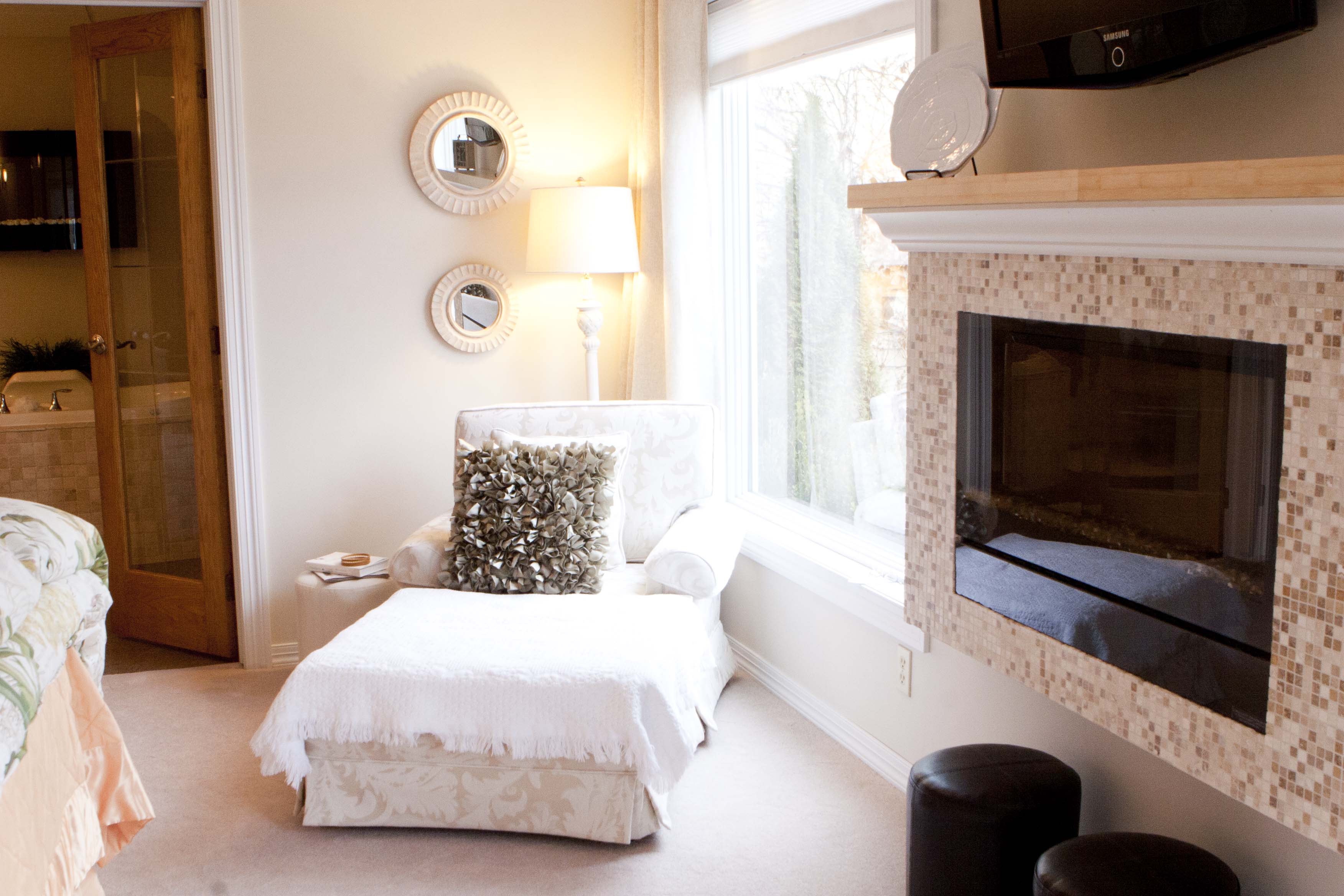 Our beautiful Queen Garden Suite features a queen size bed, 2 fireplaces and ensuite with free-standing soaking tub, towel warmers, bathrobes and slippers, and all the amenities of home. In addition, guests will enjoy full access to Hackberry's Garden Kitchen with stainless steel appliances and Miele coffee maker. During your stay, enjoy our complimentary wi-fi as well as access to laundry, ping-pong, large screen TV, baby grand piano and keyboard.